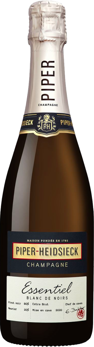 Essentiel Blanc de Noirs embodies the bold essence of Piper-Heidsieck today. A tribute to the Maison’s heritage and deep connection to Pinot Noir, yet resolutely forward-looking with a contemporary edge. Crafted with 100% grapes from certified sustainable vineyards, this Extra-Brut Champagne reveals an elegant, mineral-driven expression of Blanc de Noirs, striking a perfect balance between intensity and refinement.