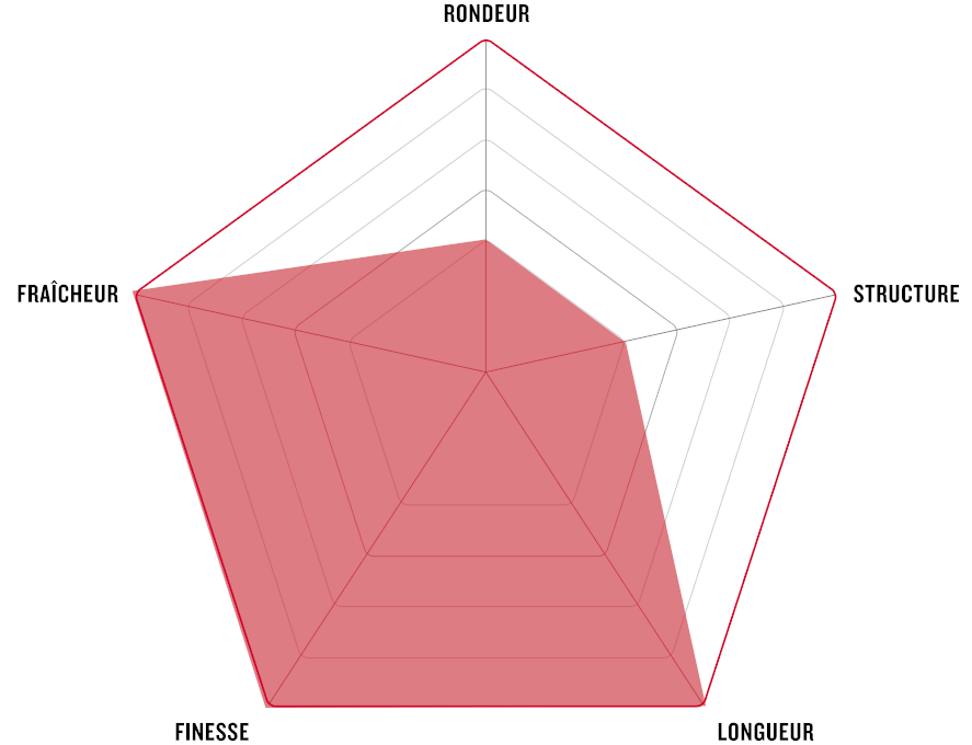 En bouche, les agrumes vifs dansent sur une trame crayeuse d’une grande élégance, adoucie par un souffle de miel d’acacia.