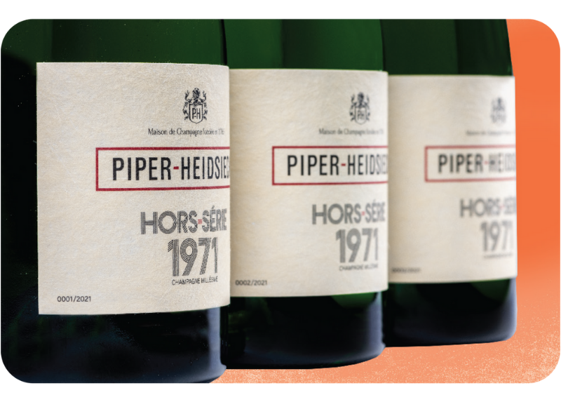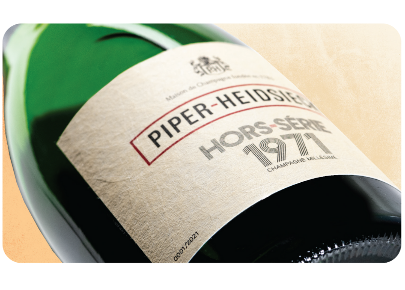 HORS-SÉRIE 1971 reflects the expertise of Piper-Heidsieck Chief Winemakers throughout the years: each one has contributed to nurturing this vintage by giving it the time to perfect its slow ageing before finally being unveiled in 2021.