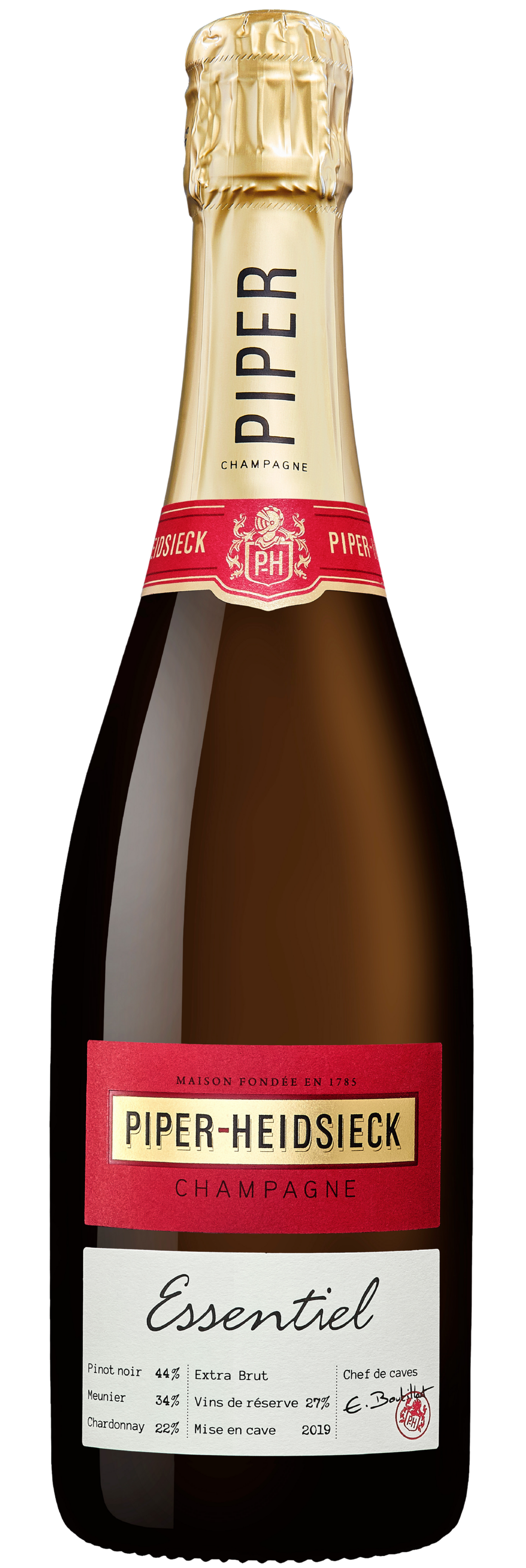 A champagne for those who seek more. Essentiel Extra Brut is a pure and expressive cuvée. With a blend mirroring the House’s Brut signature—Pinot Noir, Meunier, and Chardonnay—it draws its complexity from over 50 carefully selected crus across Champagne. Chef Winemaker Emilien Boutillat carefully selects exceptional terroirs and age-worthy wines to craft Essentiel Extra Brut—a bold expression of Piper-Heidsieck’s signature style, designed to shine in the world of gastronomy. Chef Winemaker Emilien Boutillat carefully selects exceptional terroirs and age-worthy wines to craft Essentiel Extra Brut—a bold expression of Piper-Heidsieck’s signature style, designed to shine in the world of gastronomy.